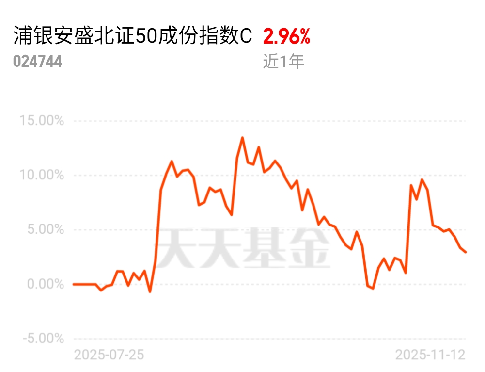 北证50迎资金催化,浦银安盛北证50可以30cm高弹性,该基金跟踪准、跌得少,成立来跑赢指数,还不限额$浦银安盛北证50成份指数C$
