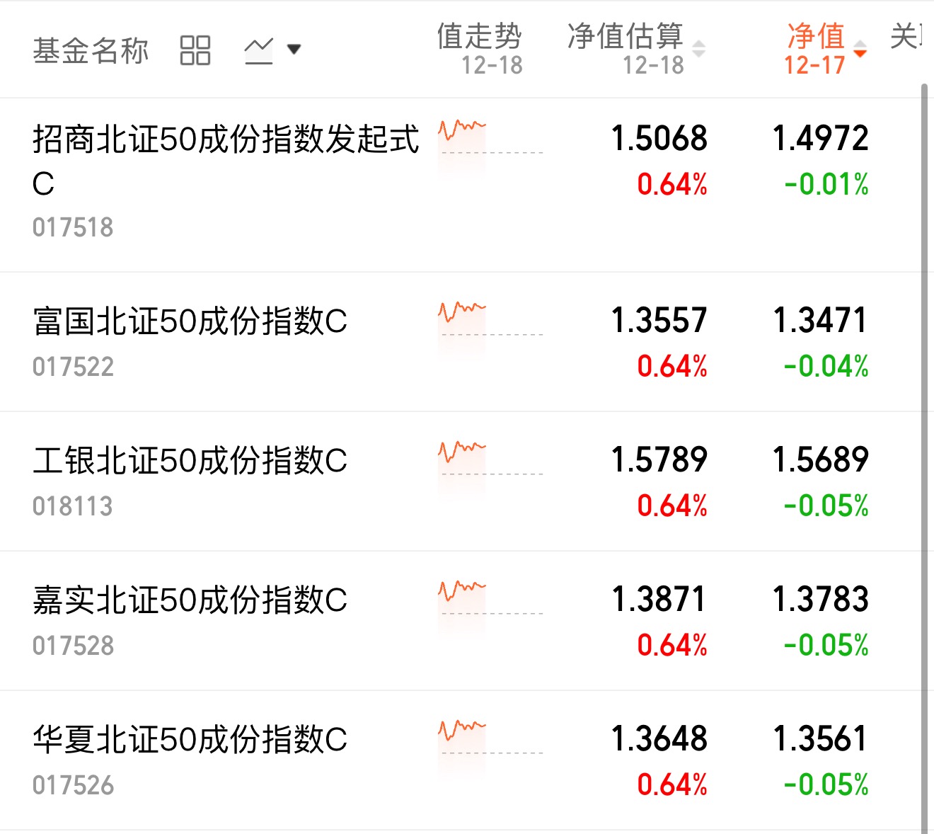 $招商北证50成份指数发起式C$ :低开高走,目前涨幅约0.64%!