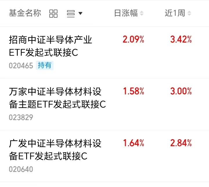 昨天A股市场表现还不错呢,整体比较强势,科技板块的表现可圈可点,CPO领涨市场,其他的人工智能、半导体芯片及机器人的午后拉升等都是比较出色的,科技还是市场主线呀。$招商中证半导体产业ETF发起式联接C(OTCFUND|020465)$昨天上涨了3.425,表现也是很好的呢。