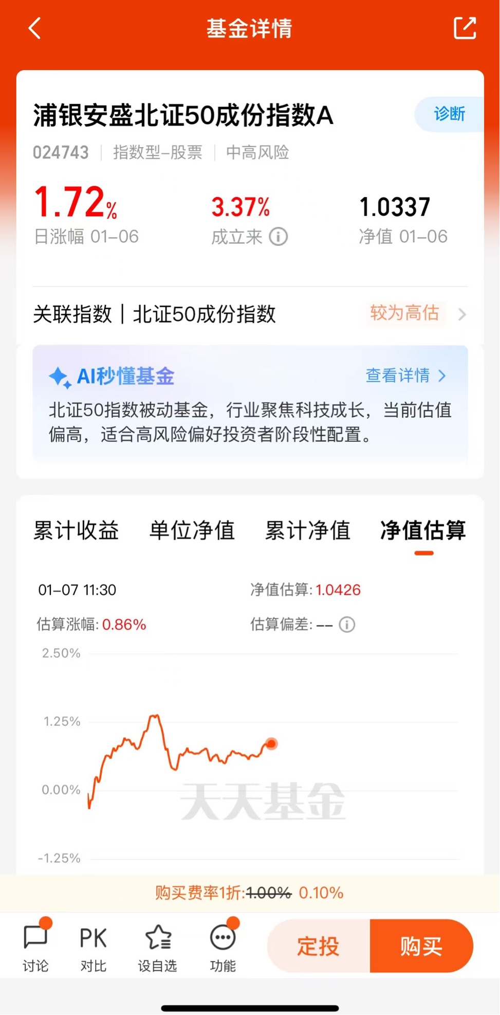 后续北证专精特新指数基金入场带来资金增量也将催化$浦银安盛北证50成份指数A$再