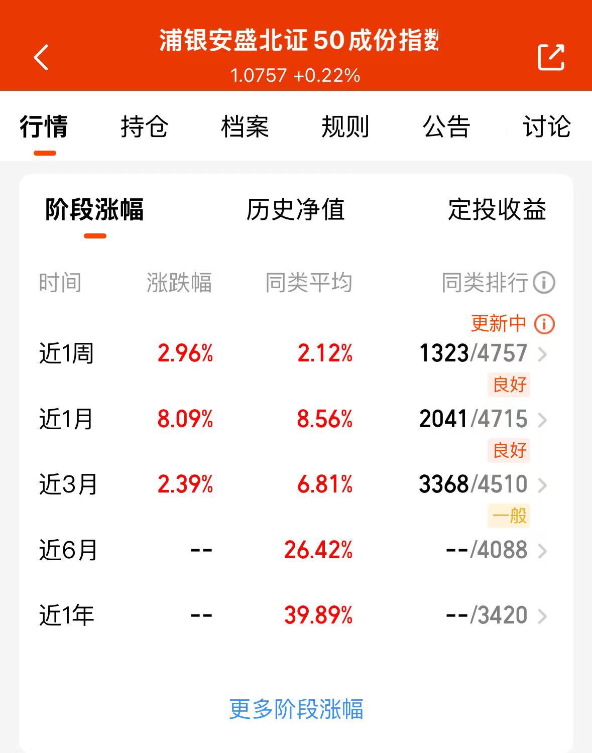 $浦银安盛北证50成份指数C$ 不限购、费率低,跟踪准还能跑赢指数,北证当前机会难得,别犹豫