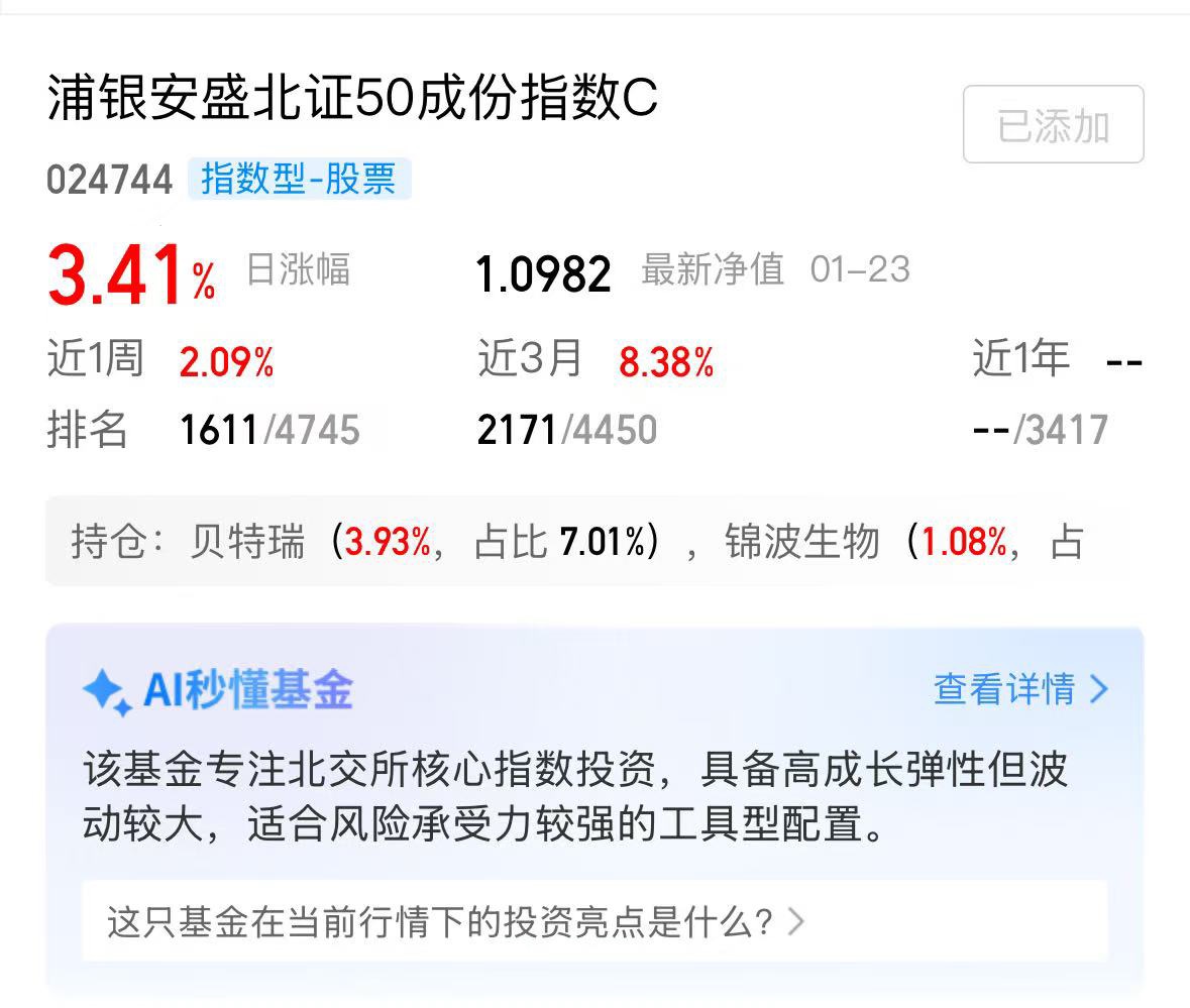 北交所打新规则优化落地的话,北证50会更吃香,浦银安盛北证50今天涨3.41%$浦银安盛北证50成份指数C$
