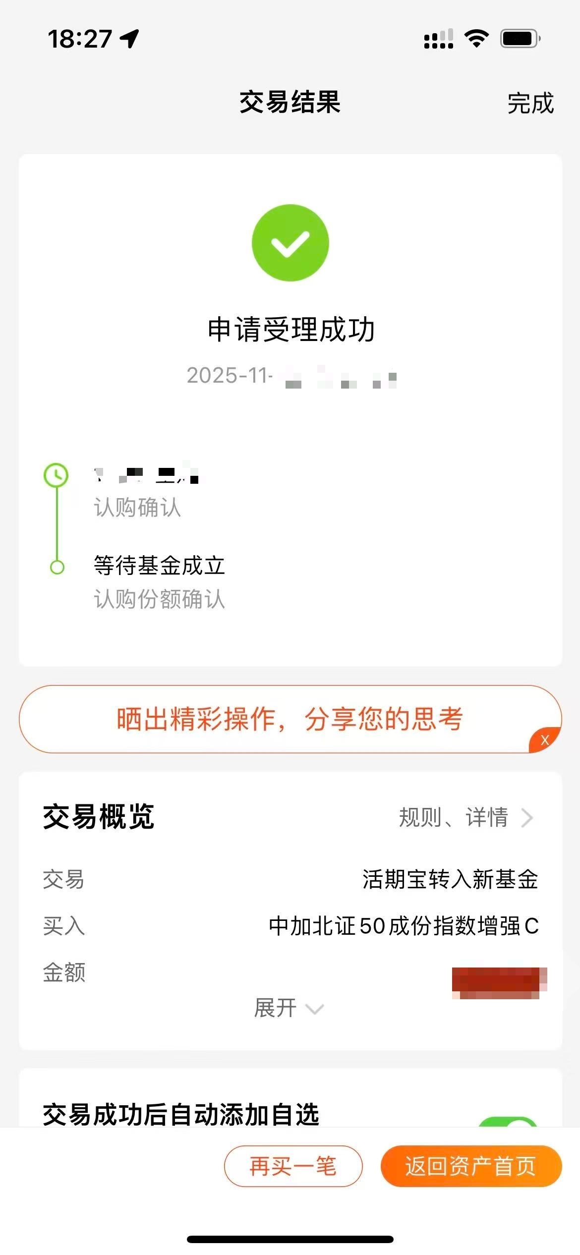 最近不少券商都表示看好小盘风格,我想着也上车试试,北证50同时兼具高弹性与政策适配性,加仓了中加北证50指增基,这基有增强策略争取超额收益,在震荡市中建仓更具性价比,还没限购,上车看看情况