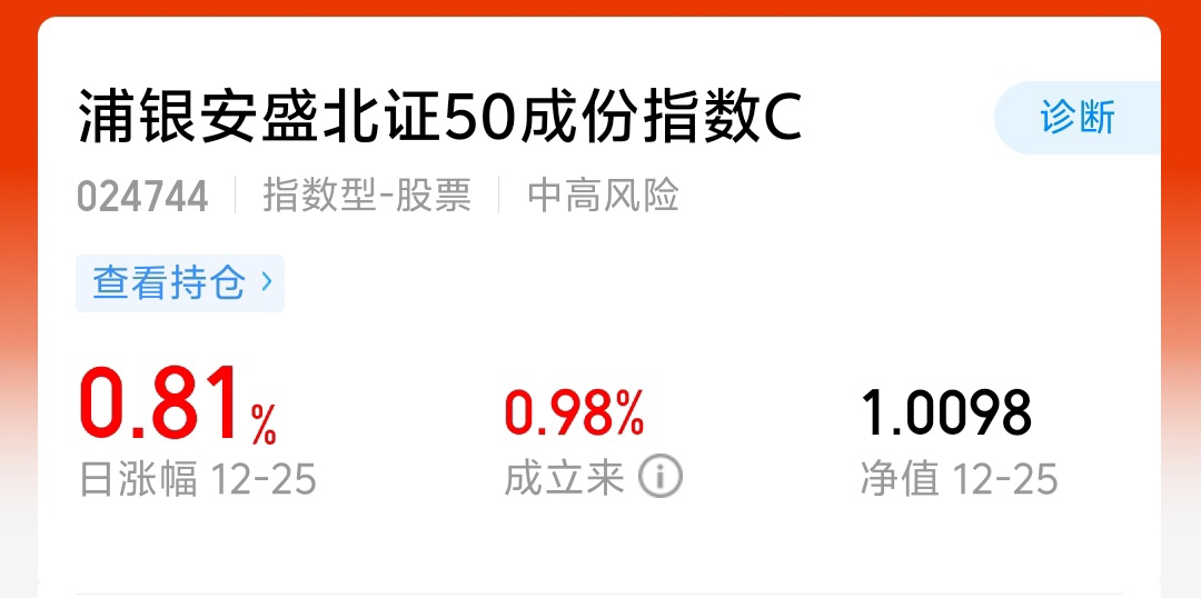 北证50今天又拉起来了!$浦银安盛北证50成份指数C$ 不限购,比较灵活。
