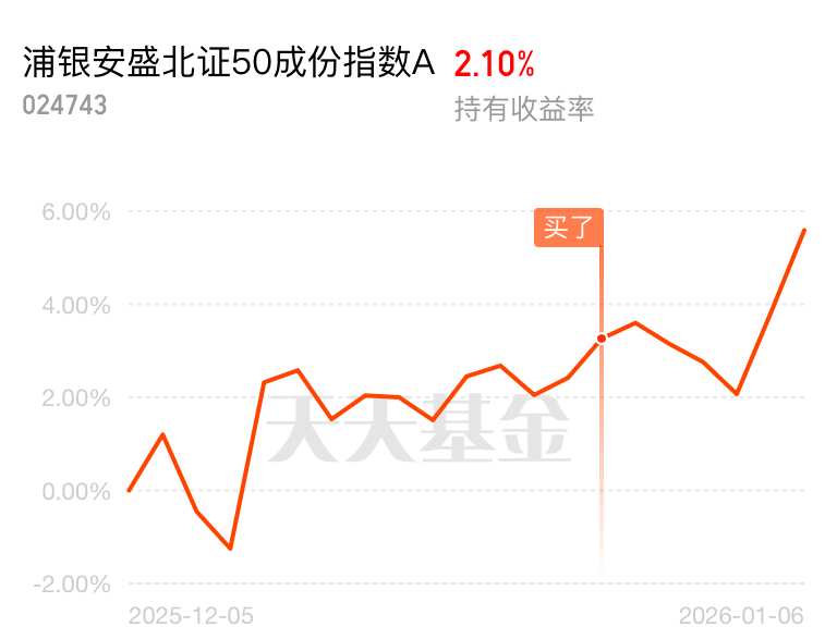最火的科技赛道在北证50中均有映射,不限额的浦银安盛北证50跟踪误差小。