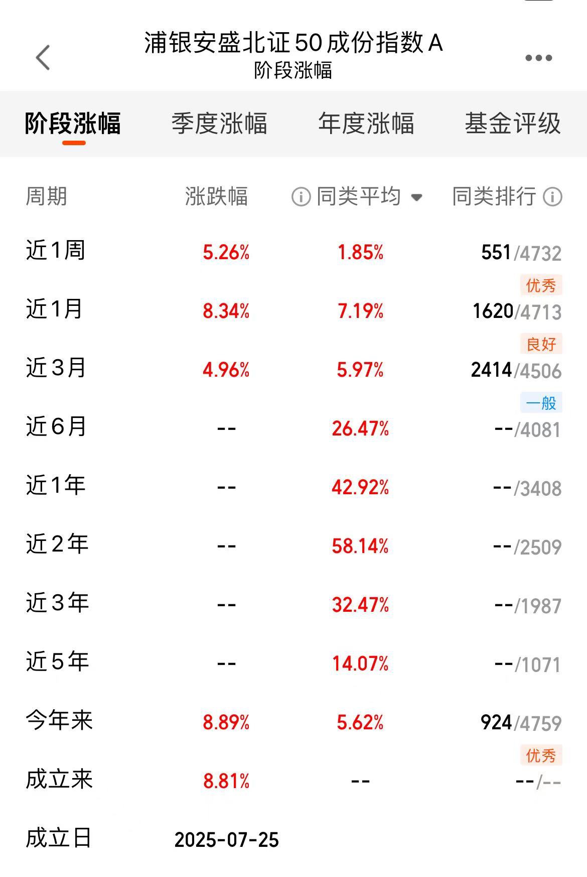 北证打新优化利好落地在即,资金要来了!$浦银安盛北证50成份指数A$今日超额,额