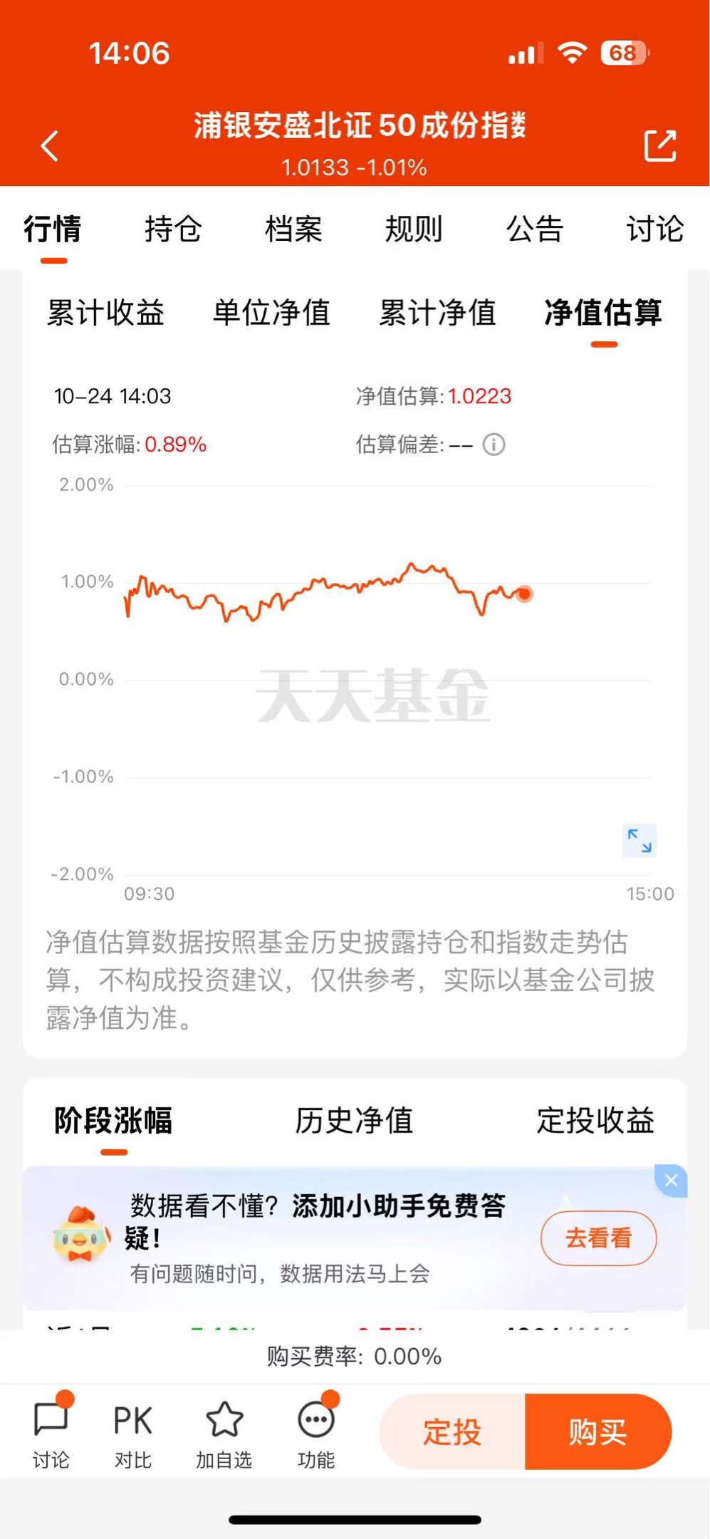 $浦银安盛北证50成份指数C$独立性强,弹性好,等大涨起来反而不敢加了,不如趁调