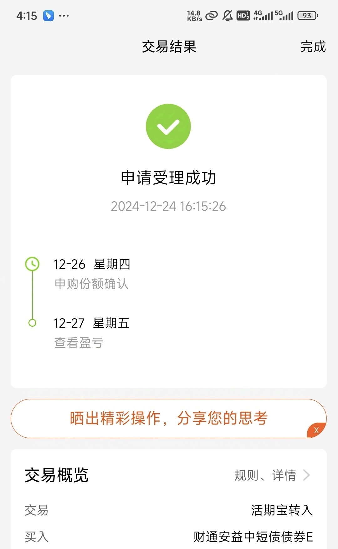 投资如长跑,稳健才能赢到最后。我认准了安益,坚持定投,每天看着稳稳的进账,虽说涨幅不大,但架不住日积月累,整体配置有它安心,坐等年底丰收。