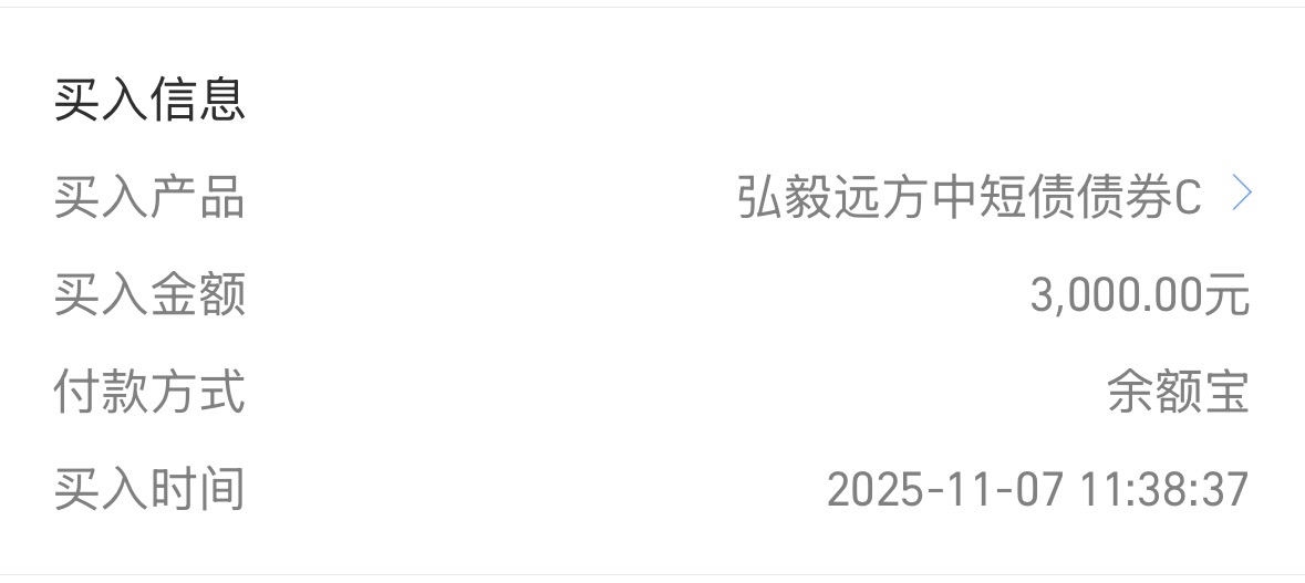 近期债市利好信号不断!央行买债释放积极信号,四季度债市将回归基本面与流动性定价,风险压制逐步减弱,对中短债更是直接利好。趁这波行情,阿诗今天上车一笔弘毅远方中短债,这只中短债最让人安心的,就是稳字当头,聚焦高评级AAA级债券,波动小、回撤低,上周大蛋不断连续刷新,马上连续上涨20天了,整体来看稳健中带了一点进攻型,当前,定存利率一降再降,手里的闲钱放着贬值太可惜,弘毅远方中短债在行情向好时抓住收益机会,满足既要又要的需求,阿诗今天上车3000元~