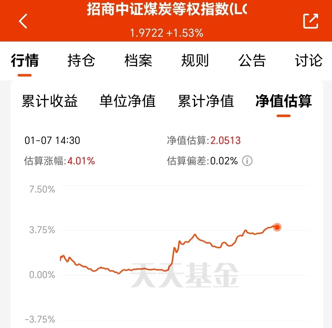 截至发文前$招商中证煤炭等权指数(LOF)C$ 预计上涨4.01%。