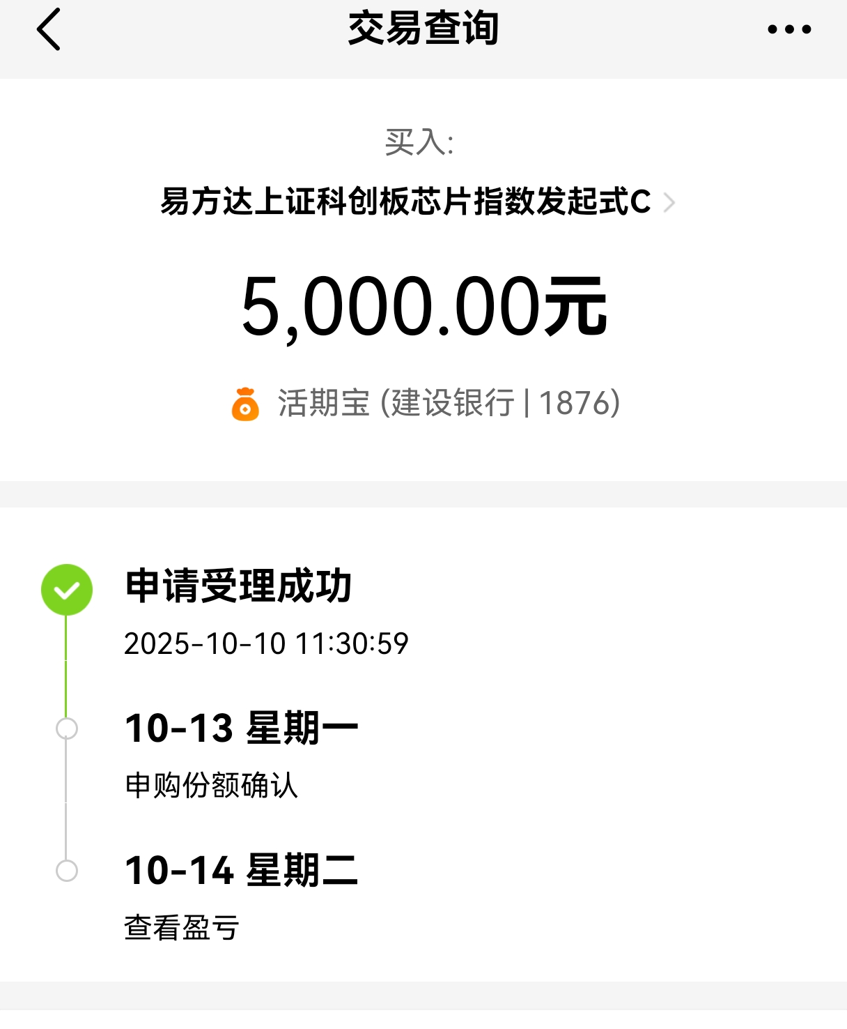 不要慌,调整其实也是给我们机会,今日加$易方达上证科创板芯片指数发起式C(OTCFUND|020671)$,趁着调整就是加仓机会,终于等到逢跌上车的好机会,大跌上车拉低持仓成本,科创芯片近期涨了不少,业绩很优秀,近一个月涨幅33.10%,近三个月涨幅69.90%,近一年涨幅85.67%,远超同类涨幅,阶段回调下,后面才能更好地上涨,当前把握好机会。