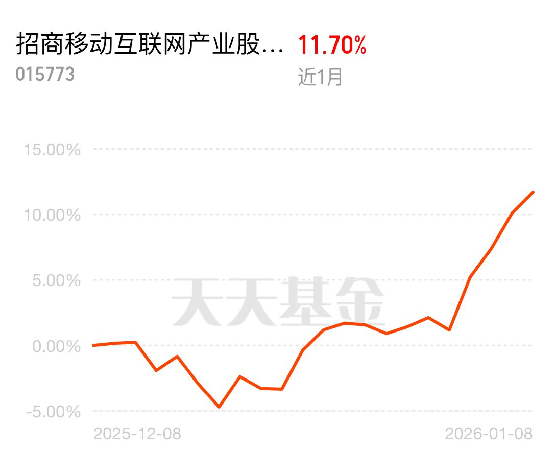 近期移动互联网板块成交额放大,市场关注度越来越高。招商移动互联网产业股票基金 C 近 1 月赚了 11.70%,连涨 4 天没停步,昨天又涨 1.46%,跟着专业基金把握机会不踩坑。$招商移动互联网产业股票基金C$