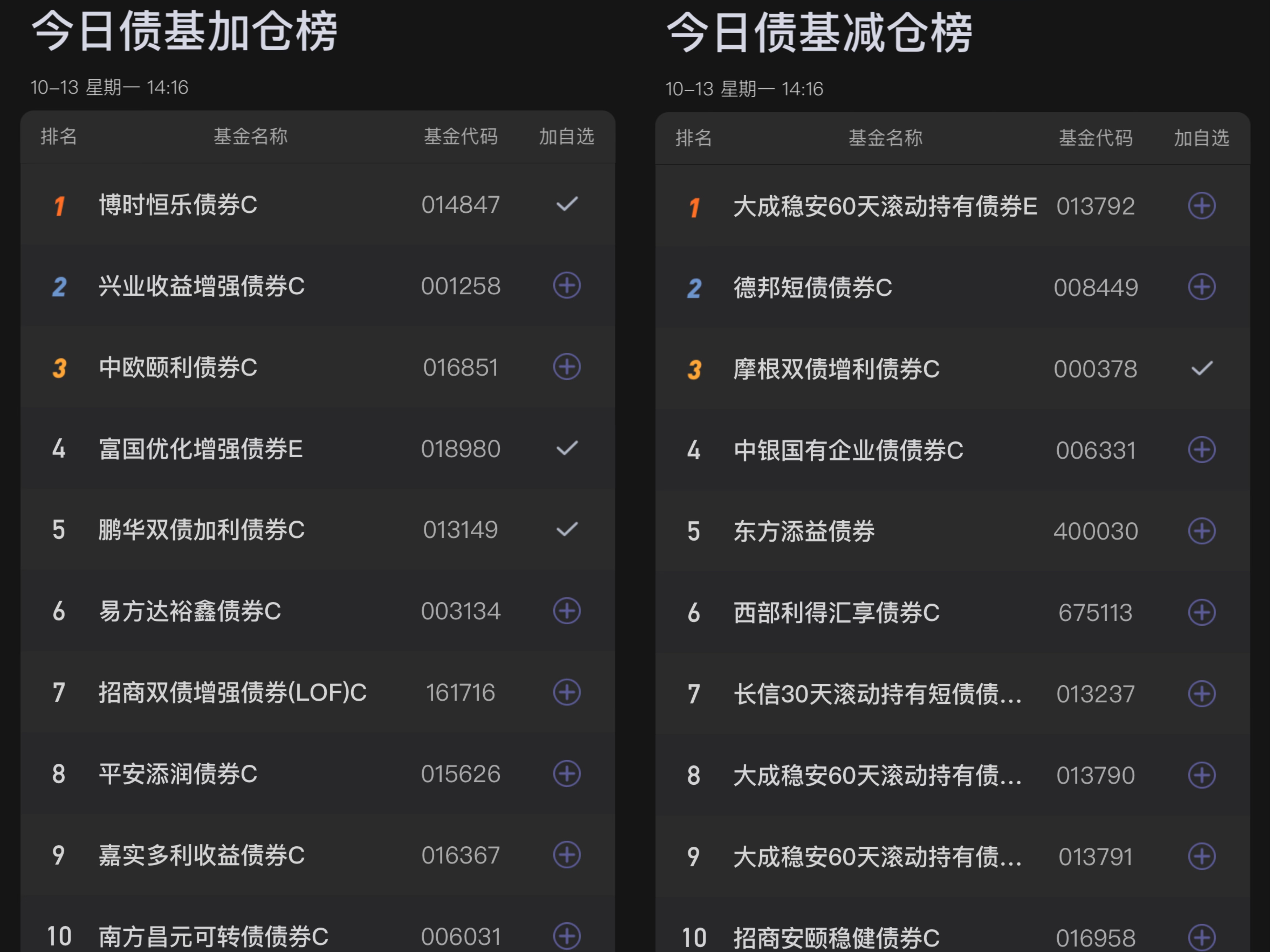 截止14点25分【叠加周六涨幅】,华子收43个,南方中债收20个,方正富邦鸿远收58个,富国优化增强收个38-48个,中邮恒利碎8-18个,最终数据已17点收盘为准。