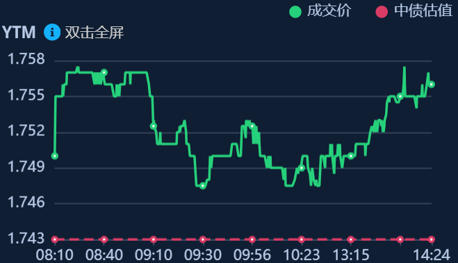 二、十年期国债收益率:1.756 0.013%(国债收益率越涨,债市越跌,两者反向关系)
