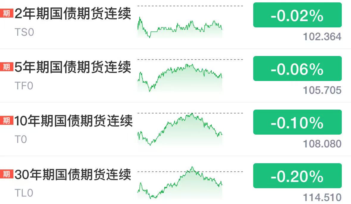 一、国债期货:-0.102%(反映市场对未来债市预期,国债期货越涨,债市越涨,两者正向关系)