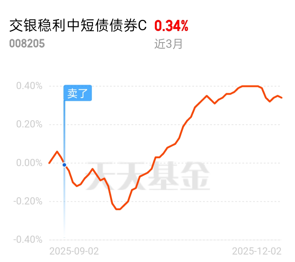 对比银行理财波动大,货币基金收益低,$交银稳利中短债债券C$ 香多了。近一年收蛋151个,它回撤小,适合长期。现在保守点入手,收蛋不慌。