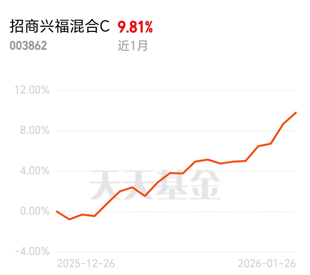 重仓有色的招商兴福混合 C 太会了,昨天权益普跌的行情里还跟着偏债混大涨 1%,近一周拿下 4.46% 的涨幅,近 1 年也有 26.96% 的收益,太靠谱了。$招商兴福混合C$