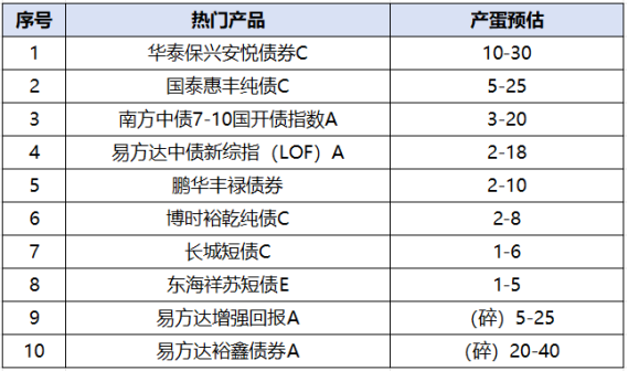 热门产品产蛋预估:(根据16:00行情预测,仅供参考,以实际产蛋为准)