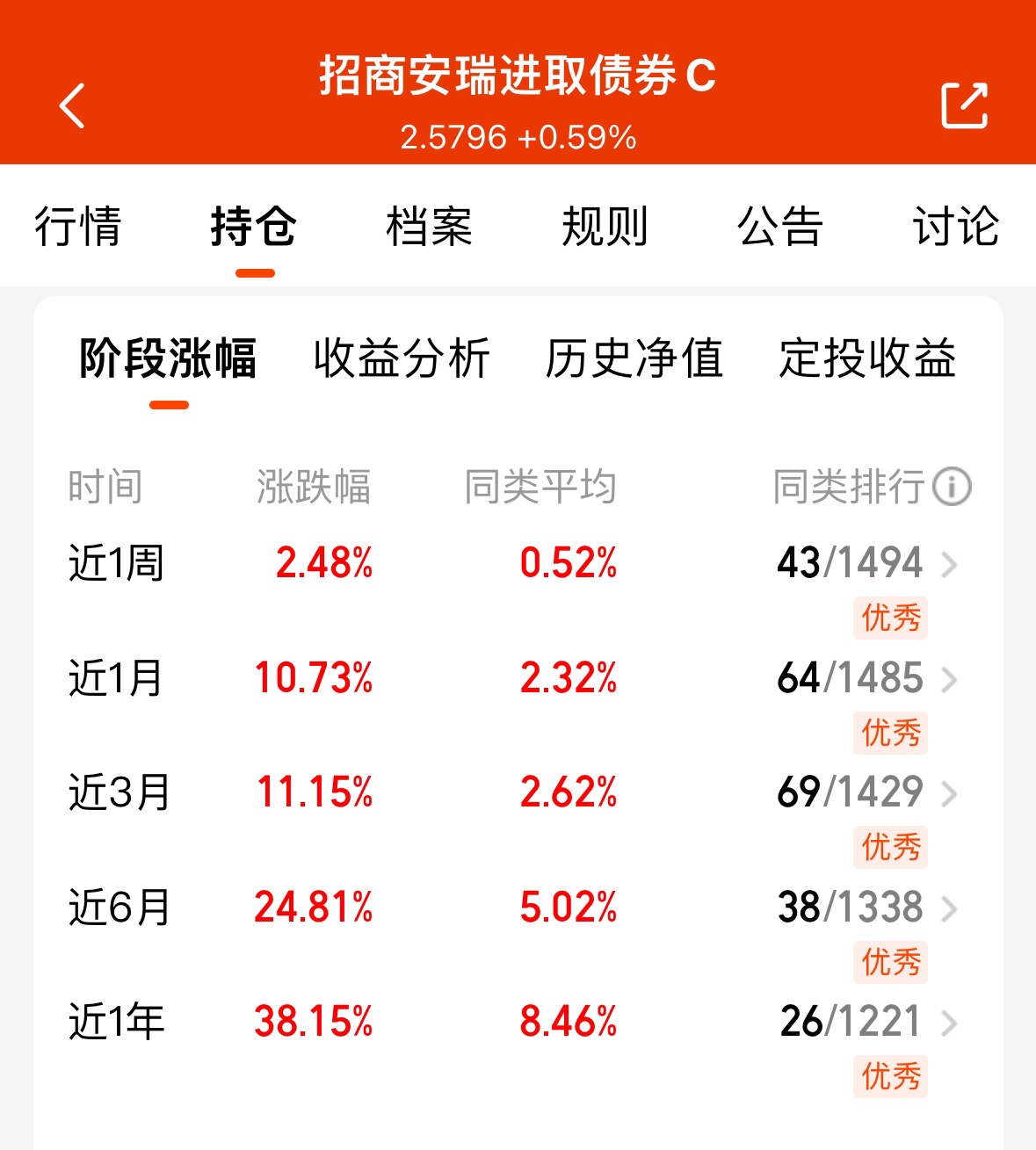 权益市场走牛的时候一般纯债市场会比较偏弱,所以为了持仓的均衡,我认为混合债也是可以适当搭配一点的,我的$招商安瑞进取债券C$ 昨天足足59个蛋,近期不断的向上,太给力了
