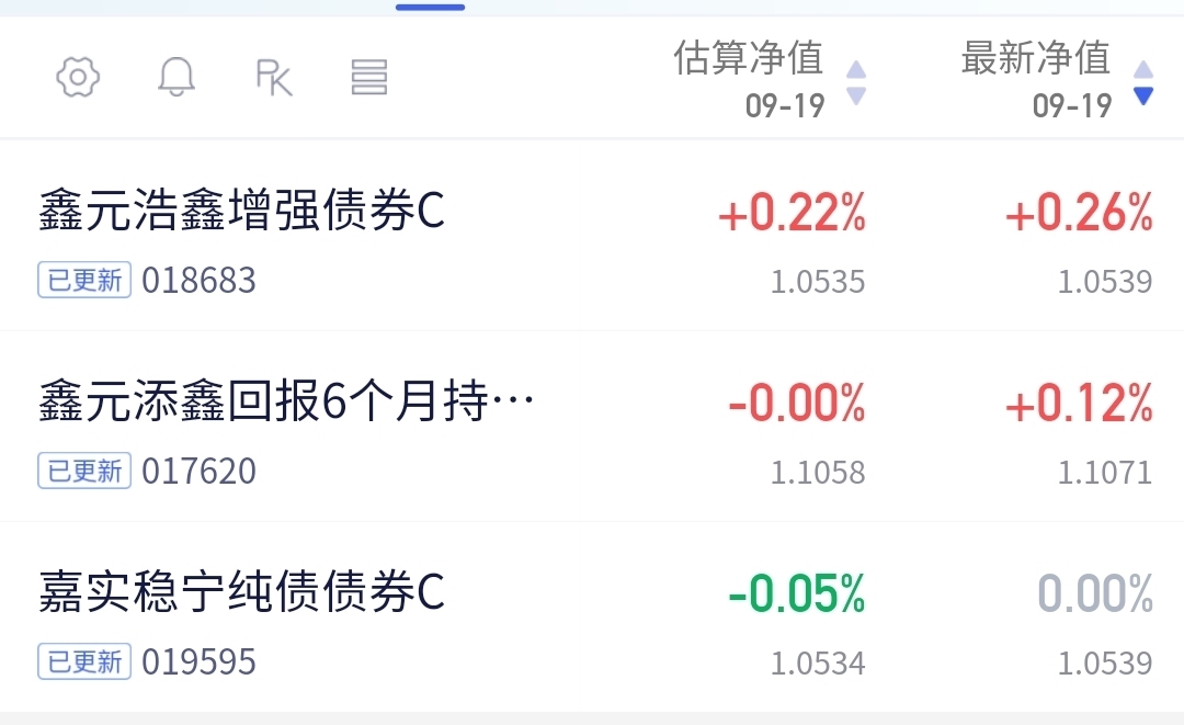 9月19日第一波收蛋来啦。鑫元、嘉实等热门债券基金都更新啦。$鑫元浩鑫增强债券C