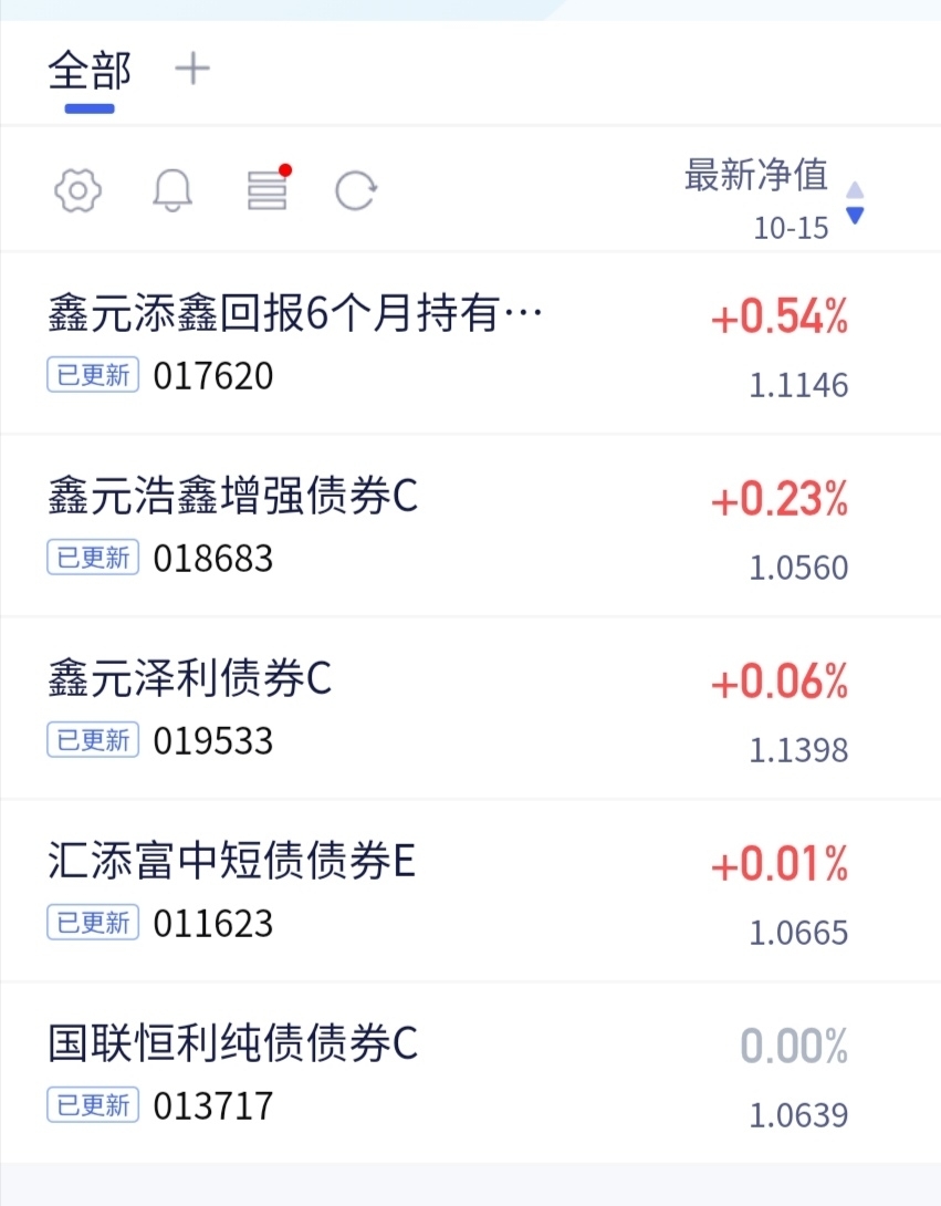 今天股市行情不错,混基收蛋多多。$鑫元添鑫回报6个月持有期混合C$ 今晚收蛋+54个,表现非常出色,前面债市已经调整差不多了,感觉还有空间,希望可以继续反弹。