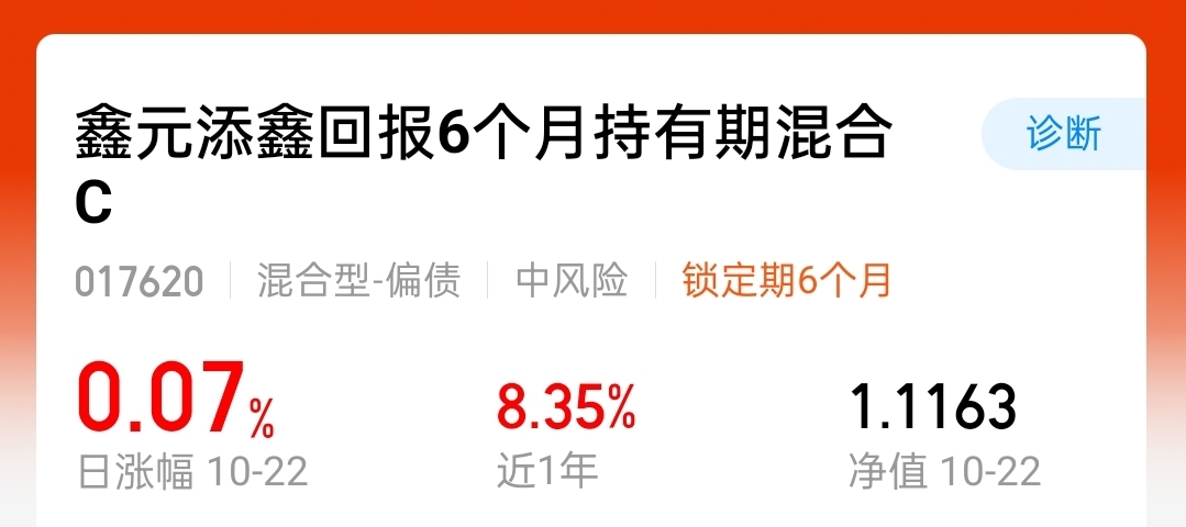 $鑫元添鑫回报6个月持有期混合CS今晚收了7个蛋,近一年收了835个蛋,给力哦