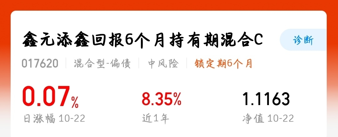 鑫回报6个月持有期混合C$收了7个蛋,挺棒