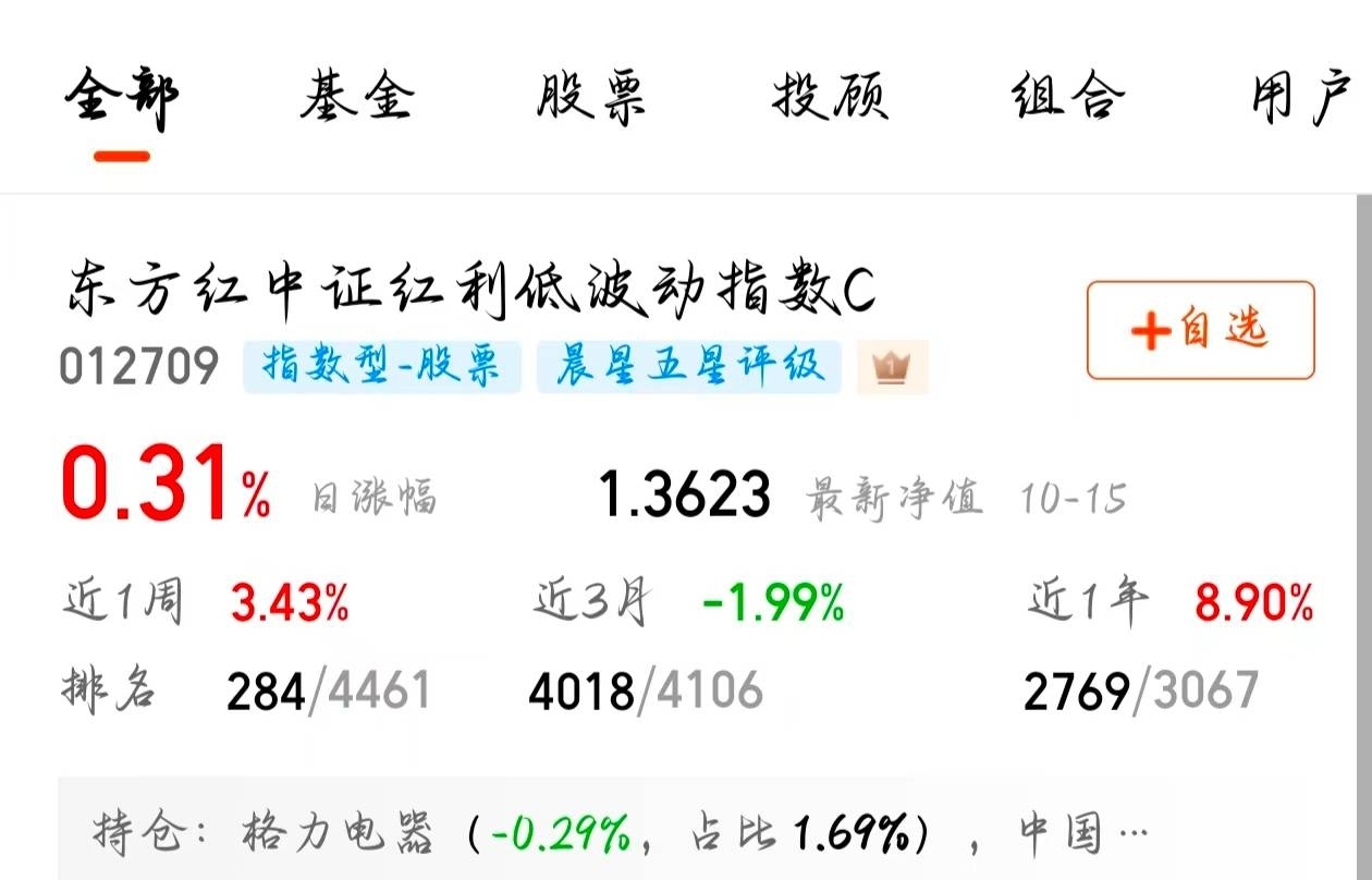 市场不好时红利是避风港,我的东方红红利低波近期净值增长可观,板块有吸引力业绩持续,未来可期。