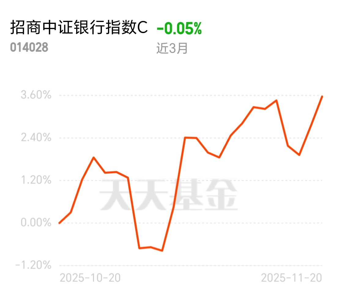 近期不少行业波动较大,银行的稳健特质让人放心。招商中证银行指数C表现亮眼,近3个月涨3.57%,昨日涨幅0.82%,覆盖优质银行股,分散风险的同时还能把握行情,是靠谱的投资选择。