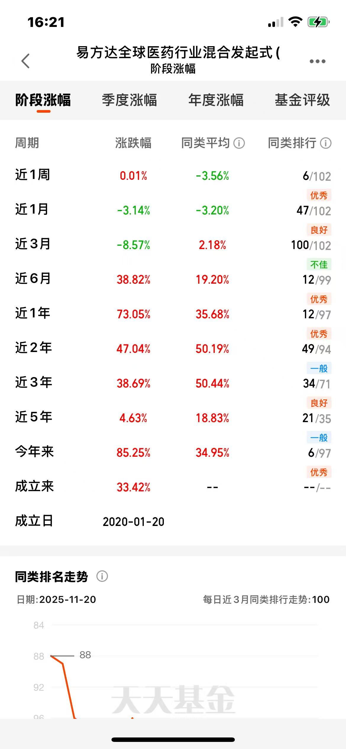 其实医药整体一直在低估区间,所以即使是最近回调震荡,风险也是有险的,长期来看医药支撑还是在,不用太担心。如果实在害怕的话,可以选择主动灵活调控的全球主动基$易方达全球医药行业混合发起式(QDII)A(人民币)(OTCFUND|008284)$今年来上涨85.25%