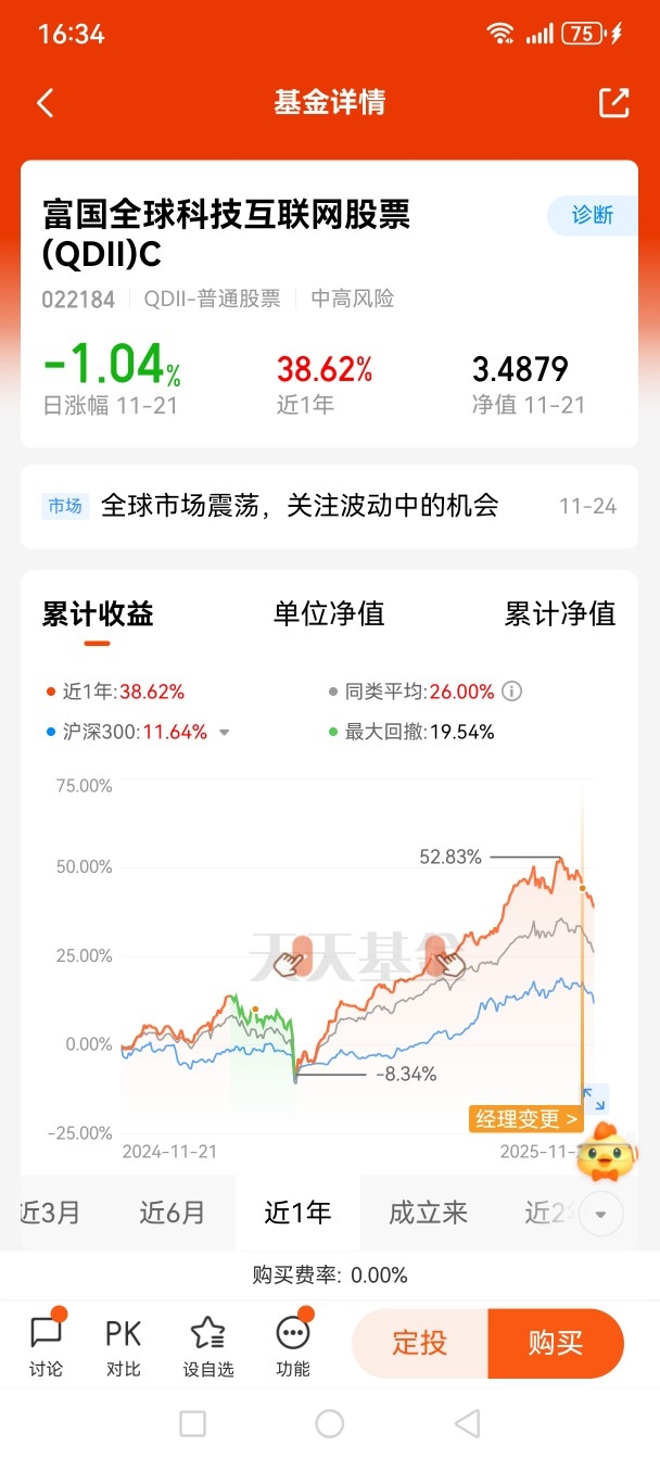 摩根标普500A眼下一个月有点磨人,就把目光转向了富国全球科技互联网C近3个月涨8%、半年25%、一年39%,还跑赢大多数同类;它持仓腾讯、谷歌、英伟达这些全球科技龙头,现在指数估值很便宜,净资产角度看也划算,QDII额度也充足,逢低布局正合适。