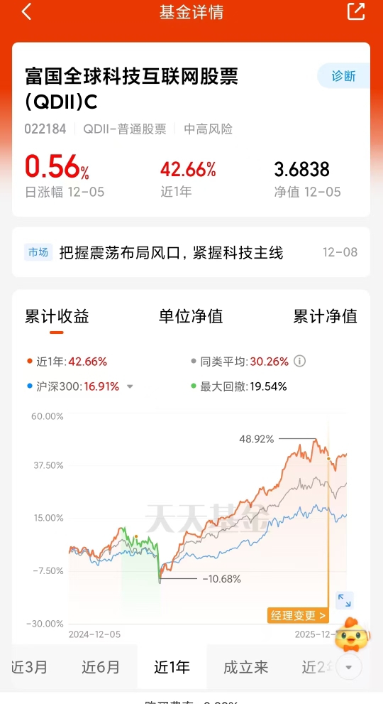 摩根标普500A目前一个月没怎么动,倒是把目光转向了富国全球科技互联网C,连涨3