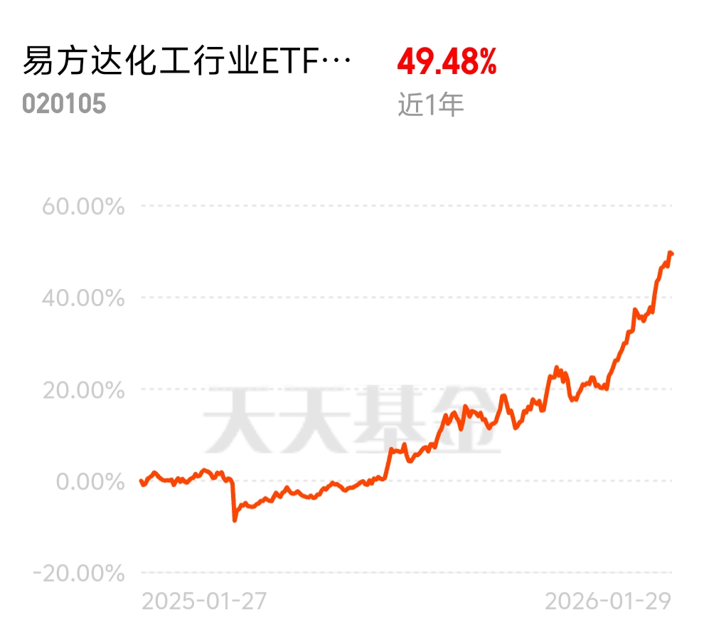 化工行业迎来多重利好,易方达化工行业 ETF 联接 C 近 1 年 49.48% 收益超给力,春耕备耕带动化肥需求,制造业复苏拉涨基础化工,这只基全面布局不愁没收益。$易方达化工行业ETF联接C$