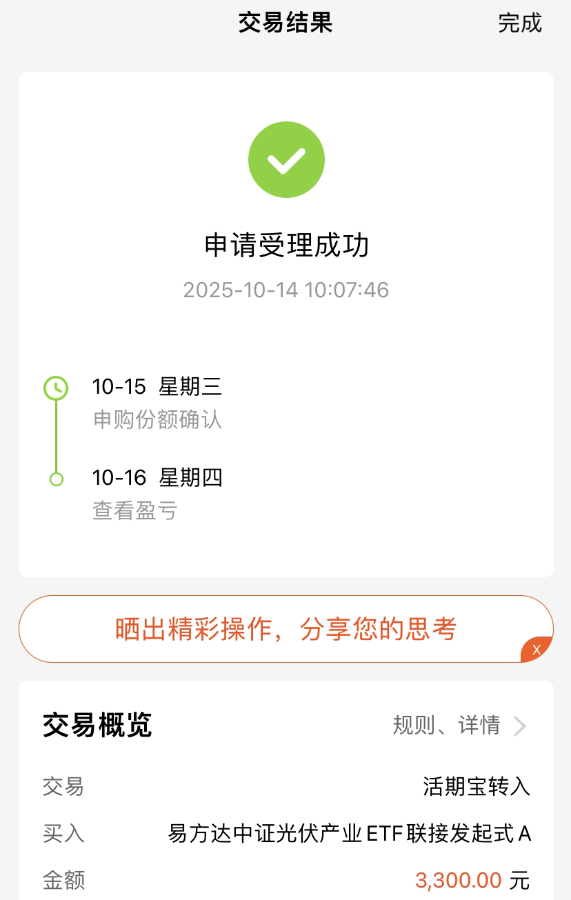 光伏今日都在讨论,最近太给力了!指数大涨不说,月线都已经5连涨,眼看要成新的市场主线。想跟这波行情,$易方达中证光伏产业ETF联接发起式A(OTCFUND|017646)$就挺合适——现在光伏离2021年高点还有大空间,估值低,产业景气度刚反转,正是不错的时机,想投光伏的不用纠结,这只可以重点看看~