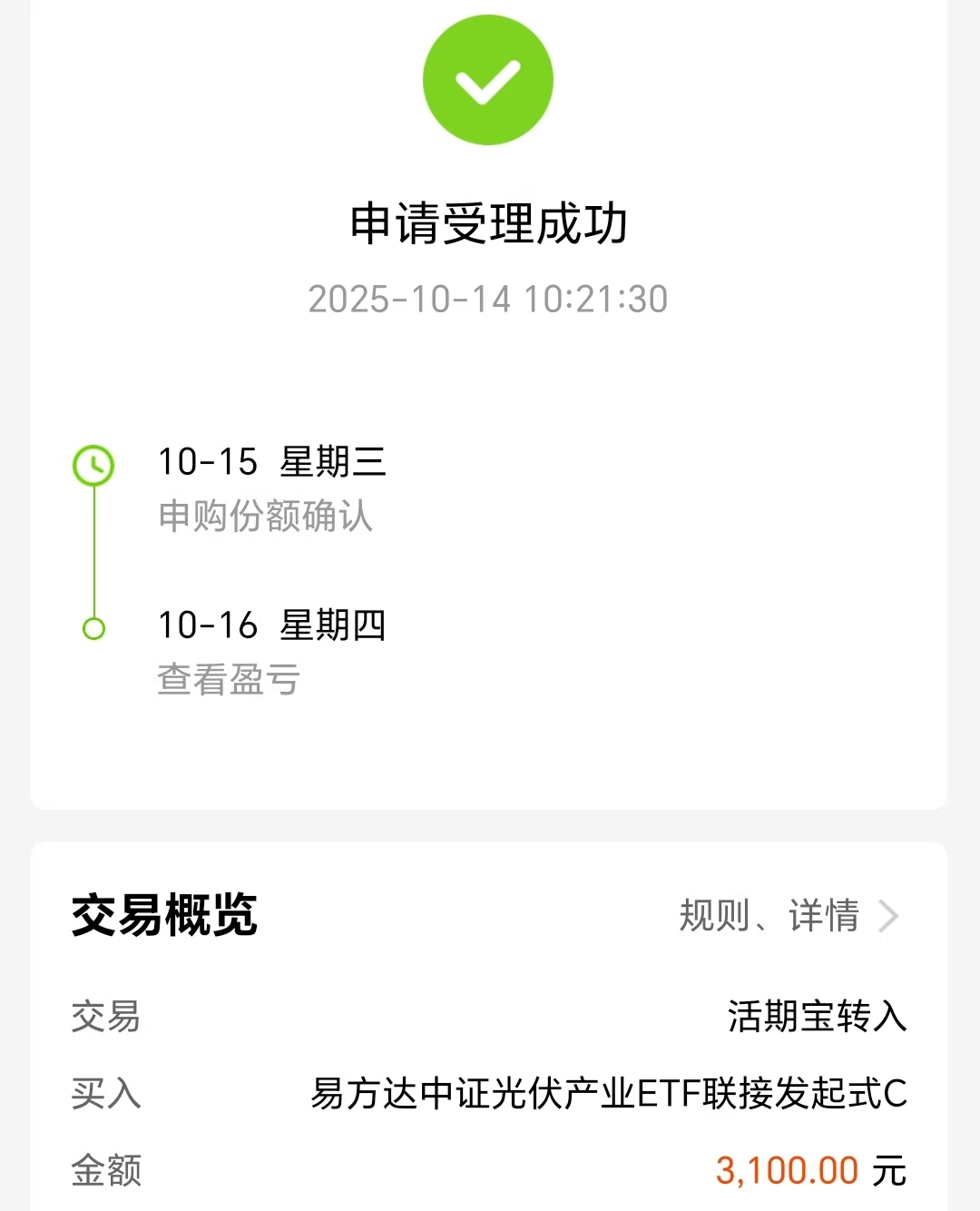 $易方达中证光伏产业ETF联接发起式C(OTCFUND|017647)$紧密跟踪光伏产业指数,能精准捕捉板块红利,无需纠结个股选择,为普通投资者参与光伏赛道提供了便捷工具,在当前产业向上周期中,有望成为分享行业成长的优质选择。