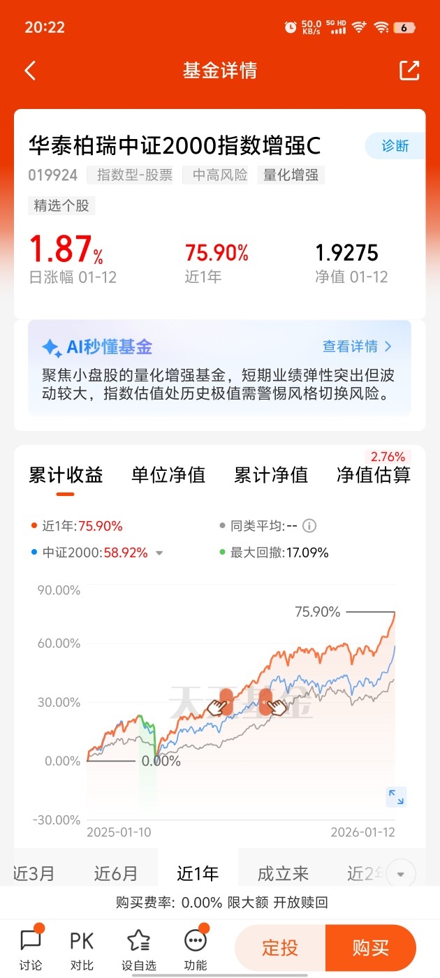 谁能想到A股开年这么猛!中证2000指数更是一骑绝尘,最近一周累计涨幅都快10%了,成交额还在持续放大,明显能看出资金在往中小盘扎堆 。现在市场风格很明确,中小盘成长股就是主角,尤其是科技、高端制造这些赛道的小票,成长空间特别大 。华泰柏瑞的这款产品正好主打这个方向,既能牢牢抓住中证2000指数的行情收益,又能通过主动增强策略多赚一笔,而且持仓分散,不会因为单只股票波动影响太大,风险更可控。对于没时间盯盘、又想分享中小盘行情的朋友来说,选它准没错,灵活进出还不用太高成本,妥妥的省心之选。#17连阳!A股日成交达3.6万亿元创历史新高# $华泰柏瑞中证2000指数增强C$