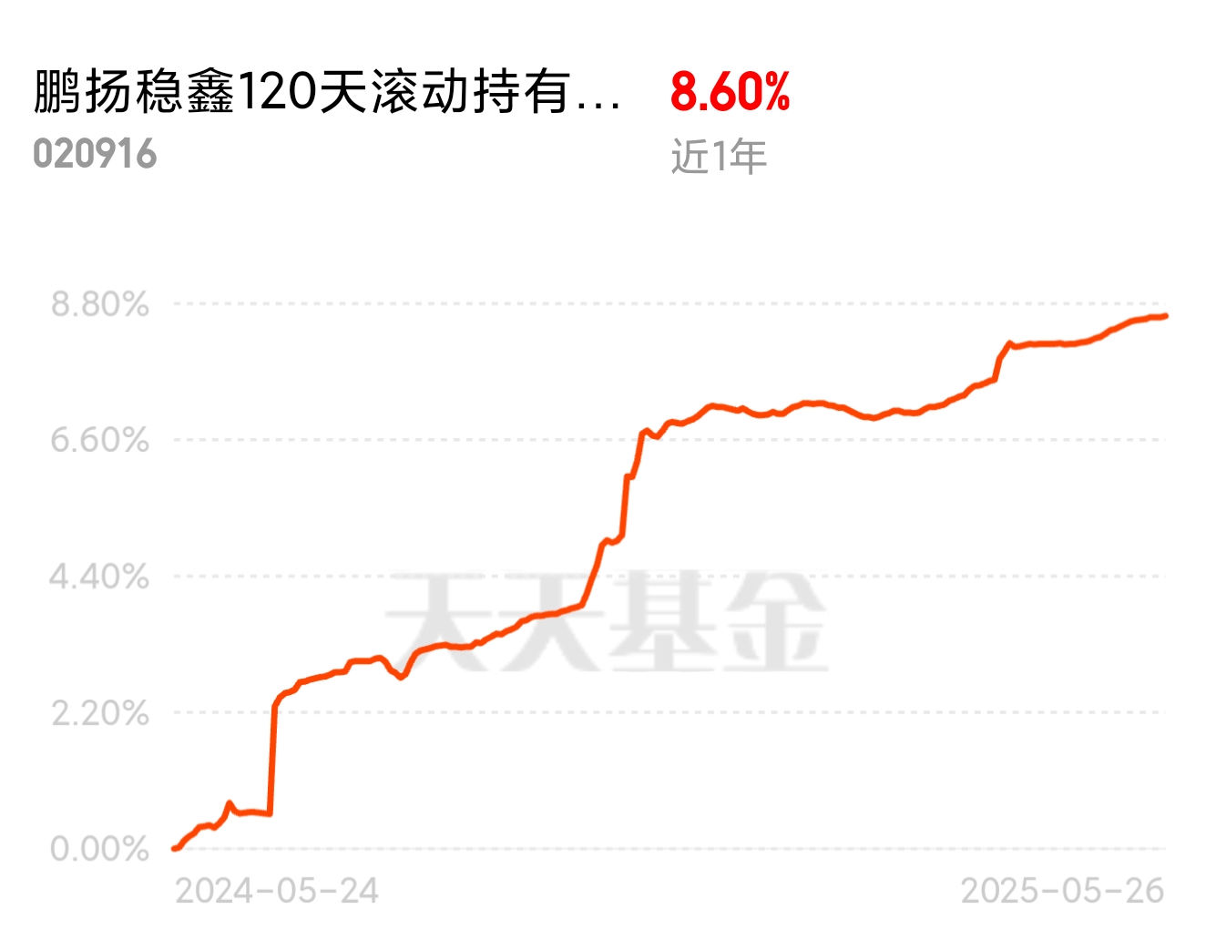 发现一个好基$鹏扬稳鑫120天滚动持有债券C$,连续收蛋18天了,昨天还收2个蛋