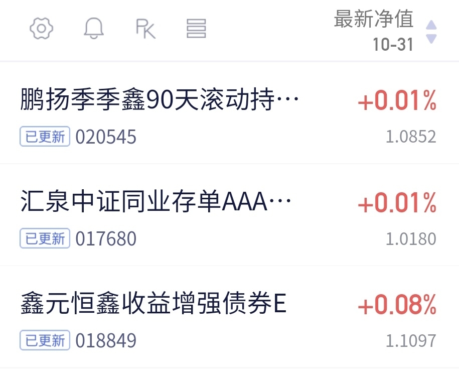 $鹏扬季季鑫90天滚动持有期债券A$ 收了一个,也是挺好