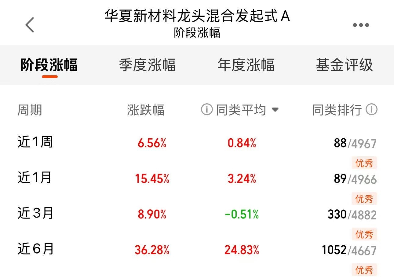 近一周涨了6.56%,持仓包含PCB材料、服务器液冷材料、光模块零部件材料等,精准对接政策支持的新材料领域,前景可期啊,继续买$华夏新材料龙头混合发起式A$
