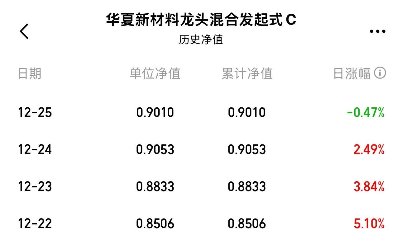 趁调整得继续布局起来,看好新材料产业的未来,这基冲劲儿大,前面3天的收益就能有11%了,果然该加仓就得加仓$华夏新材料龙头混合发起式C$