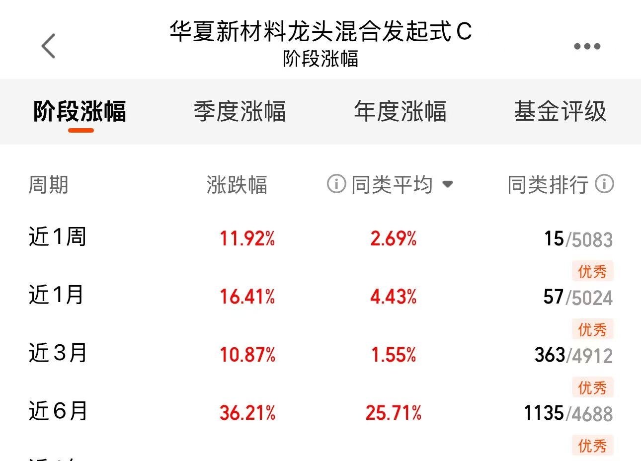 AI新材料无疑是未来发展的核心支柱之一,坚持布局才能享受未来产业升级和龙头企业成长红利,这里各阶段的业绩都很不错的$华夏新材料龙头混合发起式C$
