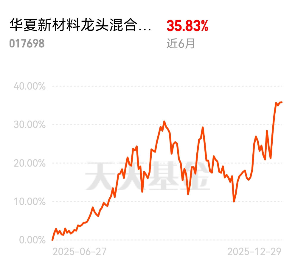 半年收益35.83%,持仓都是AI算力发展的硬件上游新材料,包含PCB材料、服务器液冷材料、光模块零部件材料,长期增长动力足,逢低捡筹了$华夏新材料龙头混合发起式C$