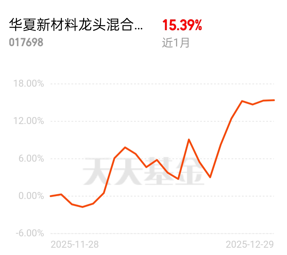重仓股覆盖生益科技等硬科技龙头,近一个月涨了15.39%,业绩也不错,跌下来加仓,等于抄底优质资产,冲$华夏新材料龙头混合发起式C$