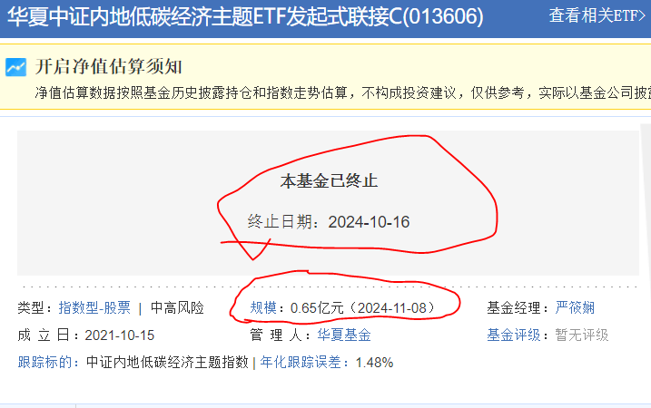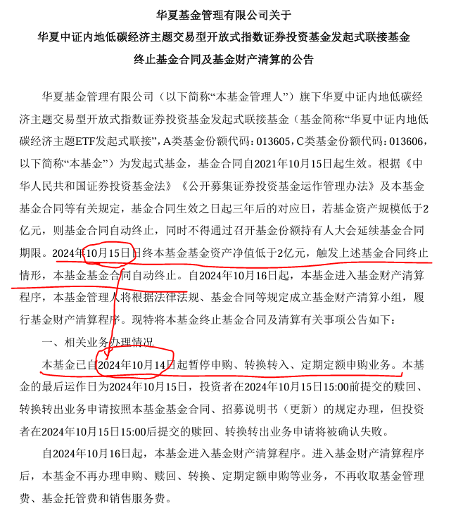 华夏中证内地低碳经济ETF联接基金,10月15日合同终止,10月13日还在让投资者买入!