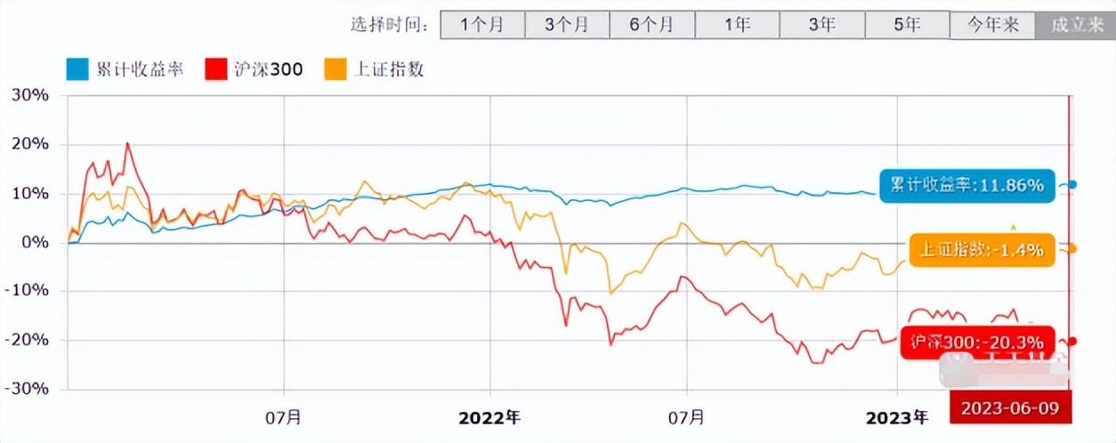但基金成立以来业绩表现同样不俗,更是在沪深300指数大跌20.3%的环境下,逆势斩获11.86%的正收益,超额收益高达32.16%。