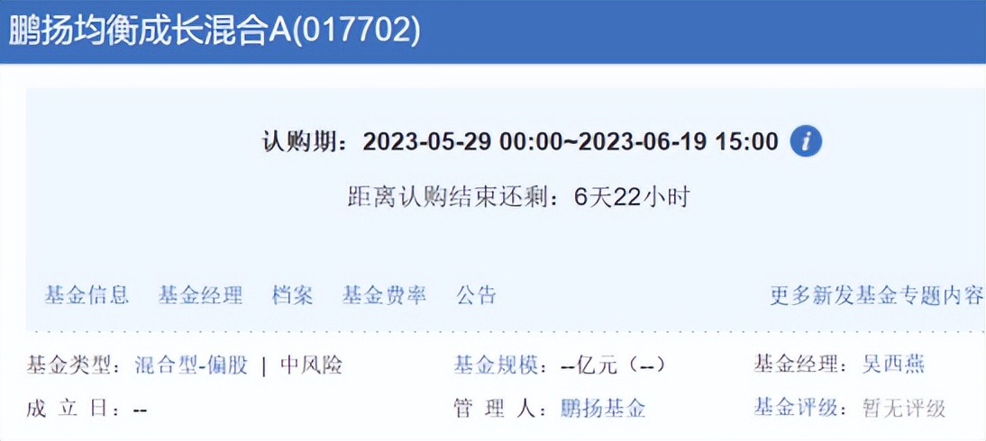 目前,鹏扬旗下正处于逆势布局阶段的基金,主要是鹏扬均衡成长混合(A:017702;C:017703)。