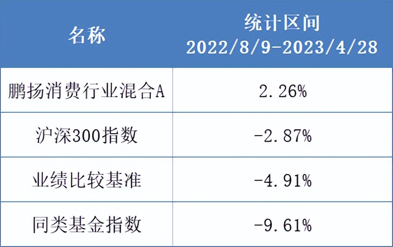 数据来源:Wind;同类基金指数为Wind偏股混合基金指数;统计区间2022/8/9-2023/4/28