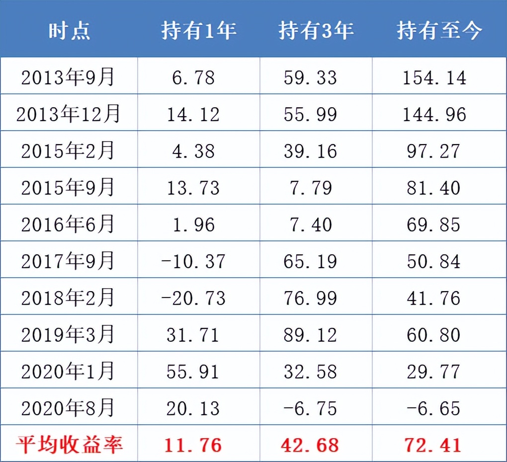 同时持有时间越长收益率越高,比如持有3年,10次“冰点期”平均收益42.68%。