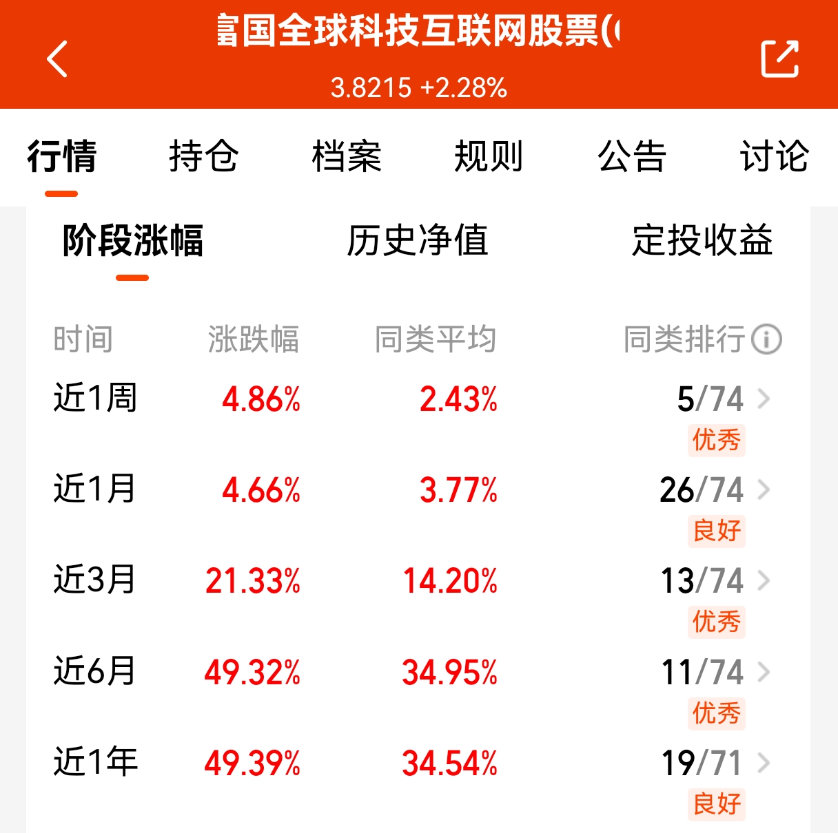 这个表现很突出,近一周涨幅4.86%,近三个月涨幅21.33%,近六个月涨幅49.32%,这里面全域覆盖核心科技,美股、港股、A股优质标的一网打尽,前十大重仓腾讯、谷歌、微软等科技巨头,这里面都是兼具成长与性价比的企业,可以布局起来。