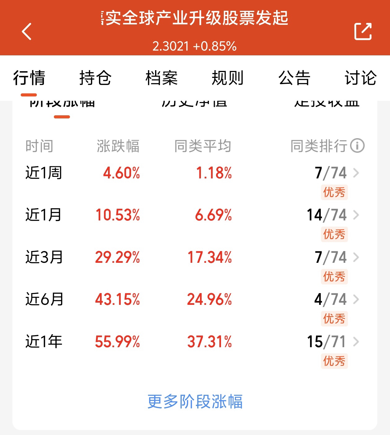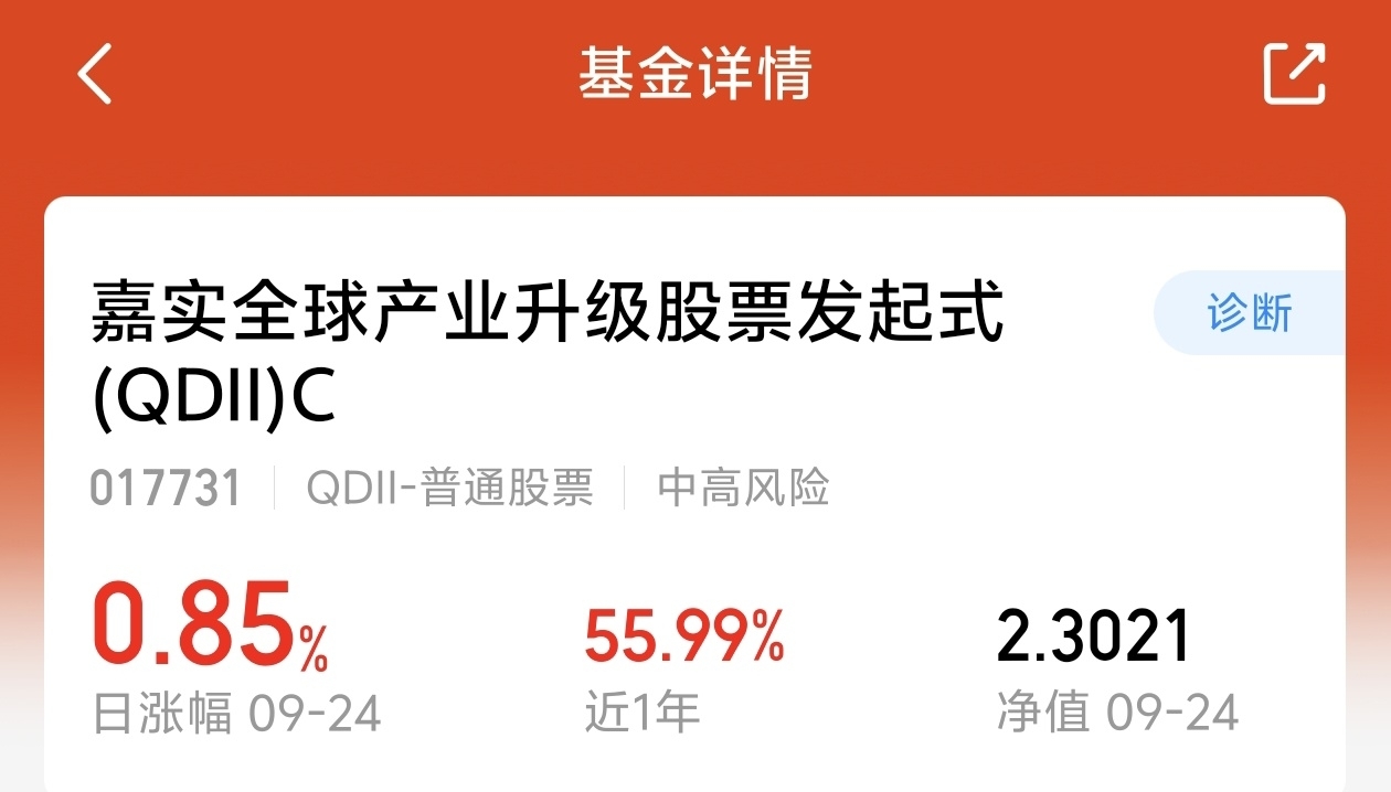 $嘉实全球产业升级股票发起式(QDII)C$ 基金表现的也是非常的优秀。昨天单日上涨了0.85%,近一个月上涨了10.53%,近一年的收益率高达55.99%,盈利能力强。基金全球化布局,降低了单一市场波动的风险,同时也能捕捉不同市场带来的发展机遇。基金布局了英伟达、超威半导体、美光科技、中芯国际等科技龙头企业,上涨弹性大,爆发力强。随着市场情绪的高涨,将迎来新人的上涨,长期持有,投资回报率高,期待后期收益。